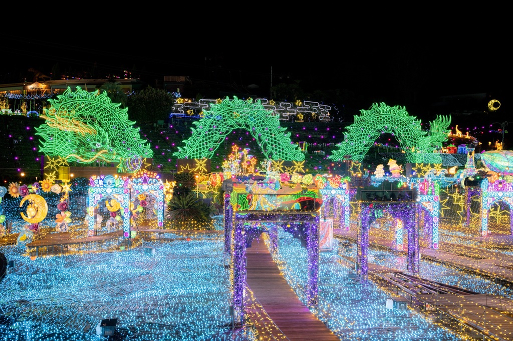 2025年11月7日(金)よりスタートした「伊豆高原グランイルミ~11th SEASON~」では、160mもの幅の斜面を総リニューアルし“龍の大冒険(=ドラゴンアドベンチャー)”をコンセプトに、龍が天空を舞う新感覚の光の演出が登場いたしました。シーズン毎に違うテーマでイルミネーションの枠を超越し続けるグランイルミ。その世界観をどうぞお楽しみください。